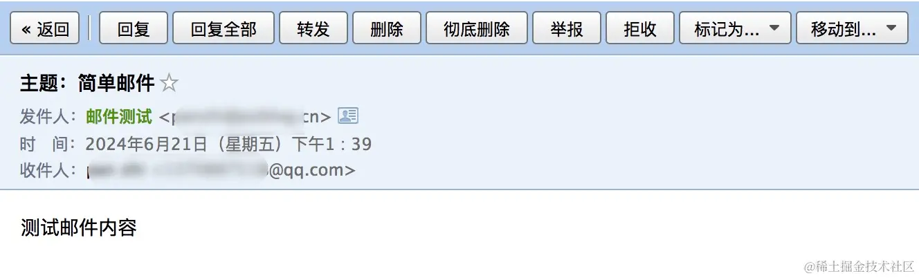 运行单元测试之后,如果不出意外的话,接受者会收到这样的一封邮件。