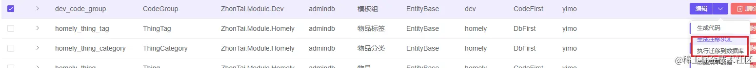 - CodeFirst 可以直接生成配置,配置保存后再使用生成迁移SQL或者将迁移执行到数据库的方式同步数据库表信息