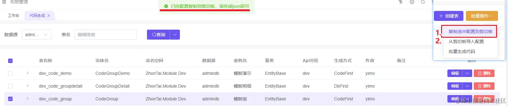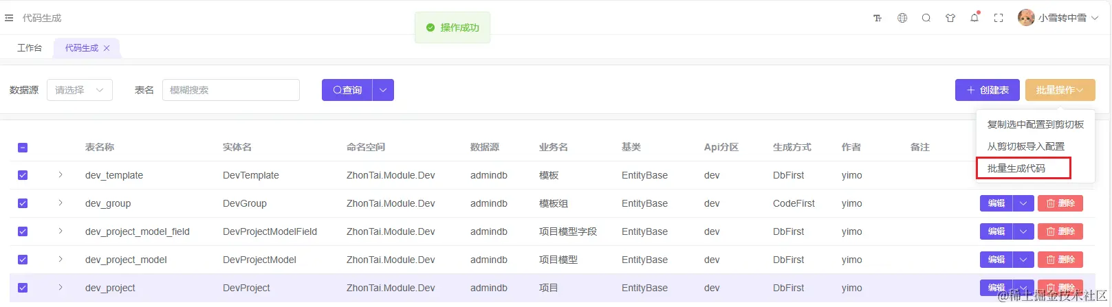 或根据前文 中台框架模块开发实践-代码生成器的添加及使用 在前台添加代码生成器菜单