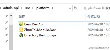 - 将生成的模块代码 ZhonTai.Module.Dev 拷贝到在新项目中