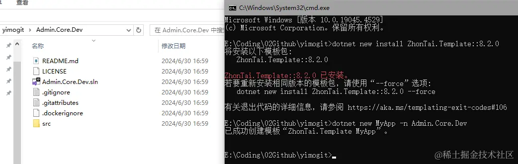 dotnet new install ZhonTai.Template::8.2.0