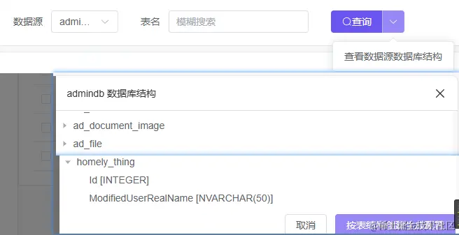 生成的数据库表