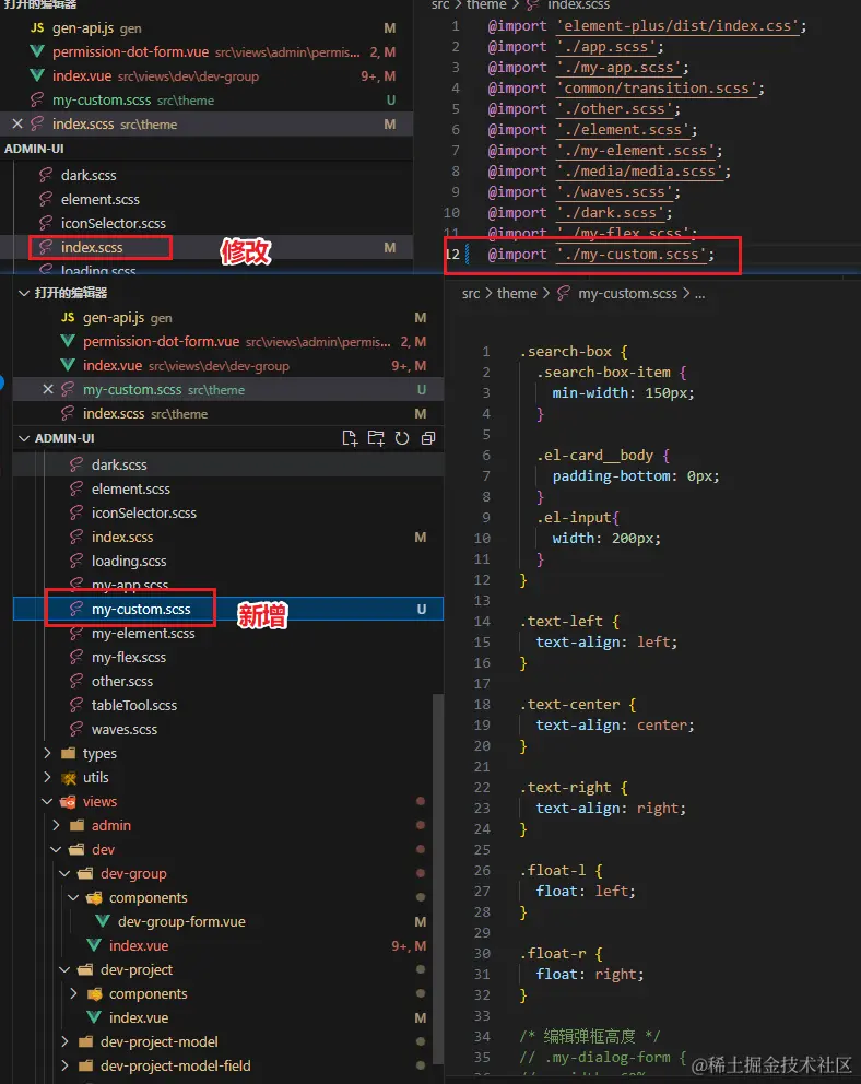 因为在做代码生成器的时候为了生成更舒服一点,添加了一些通用的样式,但是没有提交到主库,所以这里可以将我的自定义样式复制到自己的项目中