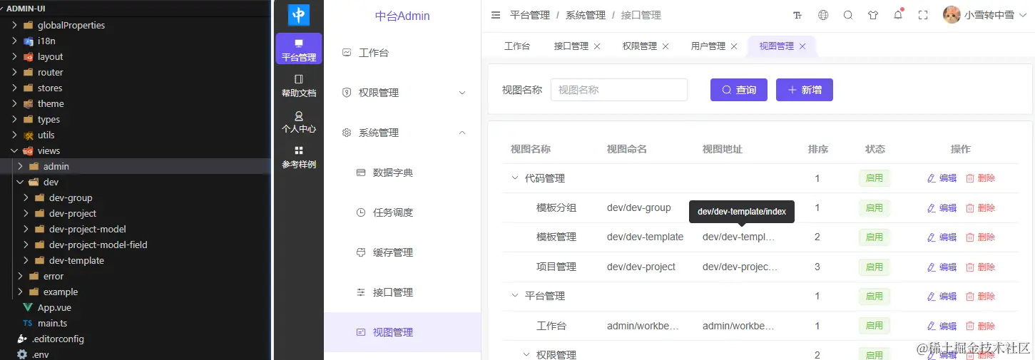 npm run dev开始配置菜单和视图