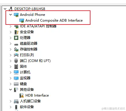 【3】查看电脑-设备管理器-显示如下:有这个可能才代表了adb真正连上了。