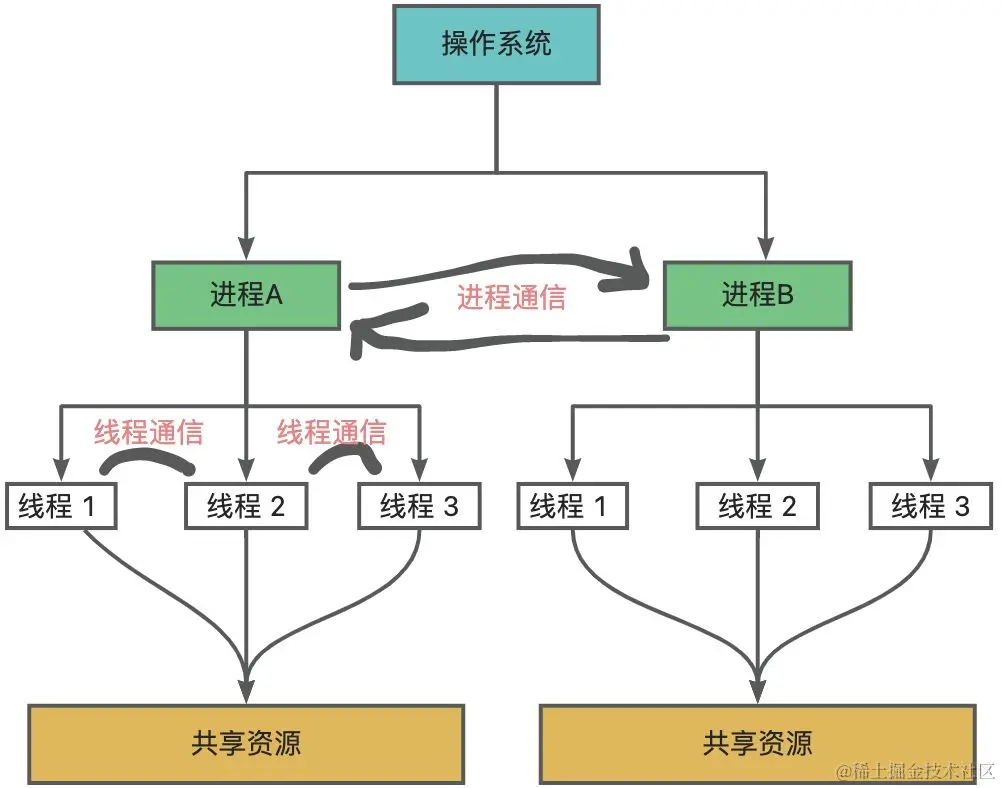 线程:是进程中的一个执行流,是 CPU 调度的基本单位。线程共享进程的资源,如内存地址空间、文件描述符等,但每个线程有自己独立的程序计数器、栈等。线程之间可以并发执行,提高了程序的执行效率。如图