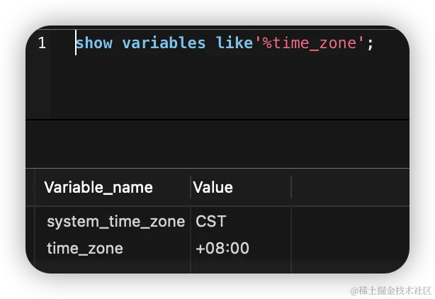 接着,查看MySQL的时区设置,如下图: