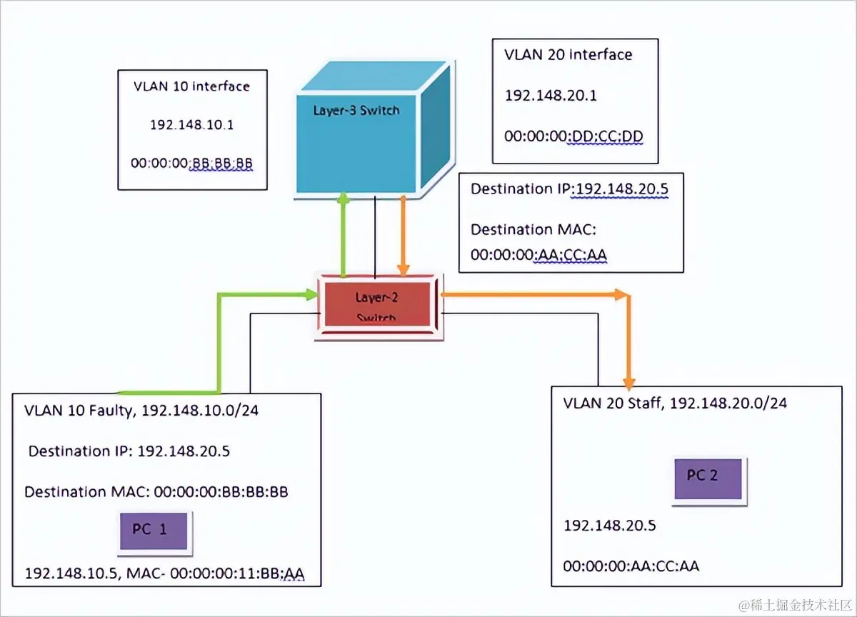 一旦它收集了所有必要的信息,将在它们之间建立链接,并将数据从发送端路由到接收端。这样就完成了不同VLAN间的通信。