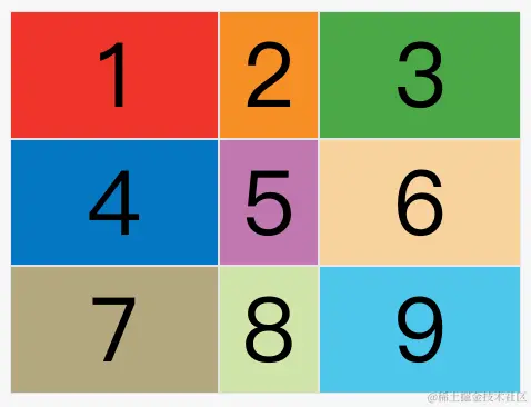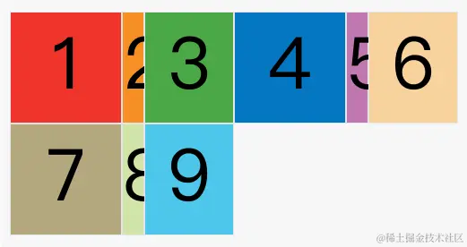 除了1号项目以外,其他项目都没有指定位置,由浏览器自动布局,这时它们的位置由容器的grid-auto-flow