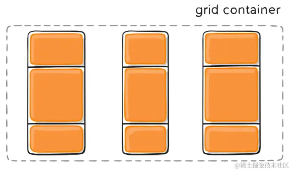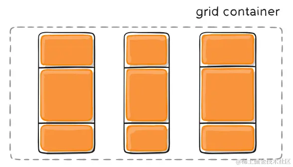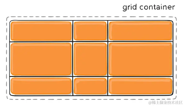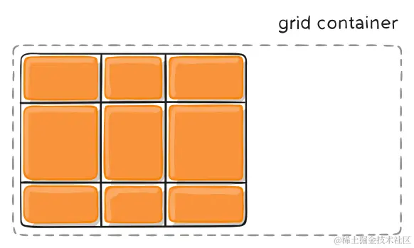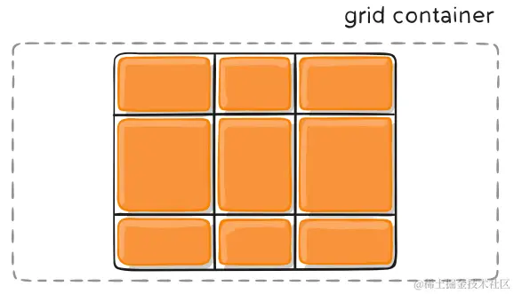 采用网格布局的区域,称为"容器"(container)。容器内部采用网格定位的子元素,称为"项目"(item)。