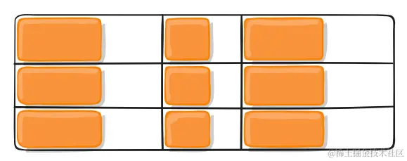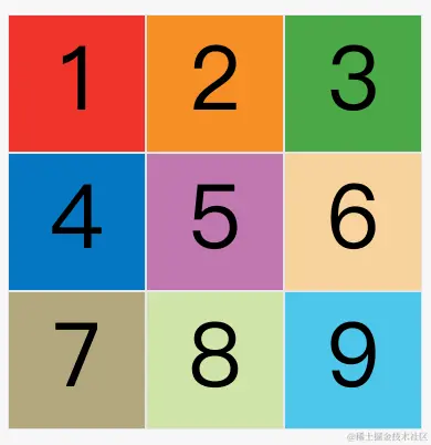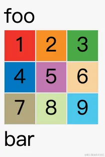 上面代码指定了一个三行三列的网格,列宽和行高都是100px