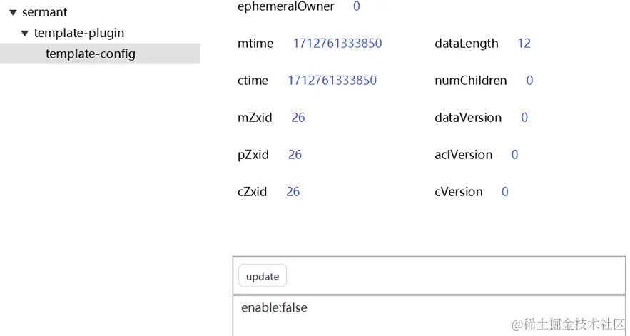 完成之后,我们需要在相应的监听节点下创建一个配置项,来测试动态配置的功能:
