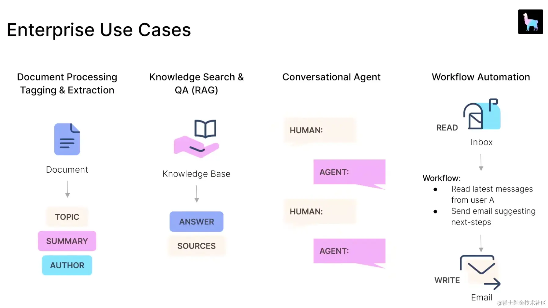 最后,Liu 宣布了 LlamaIndex 的一项新功能,名为(你猜对了):Llama Agents。Liu 说:“我们认为这是帮助你构建生产级知识助理的关键要素,尤其是随着世界变得越来越代理化。”