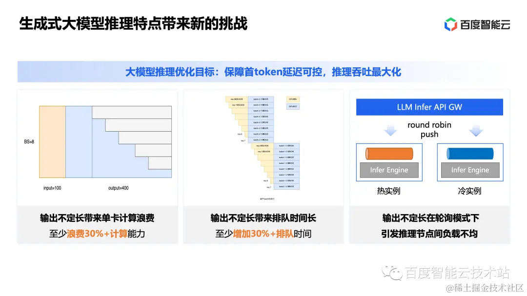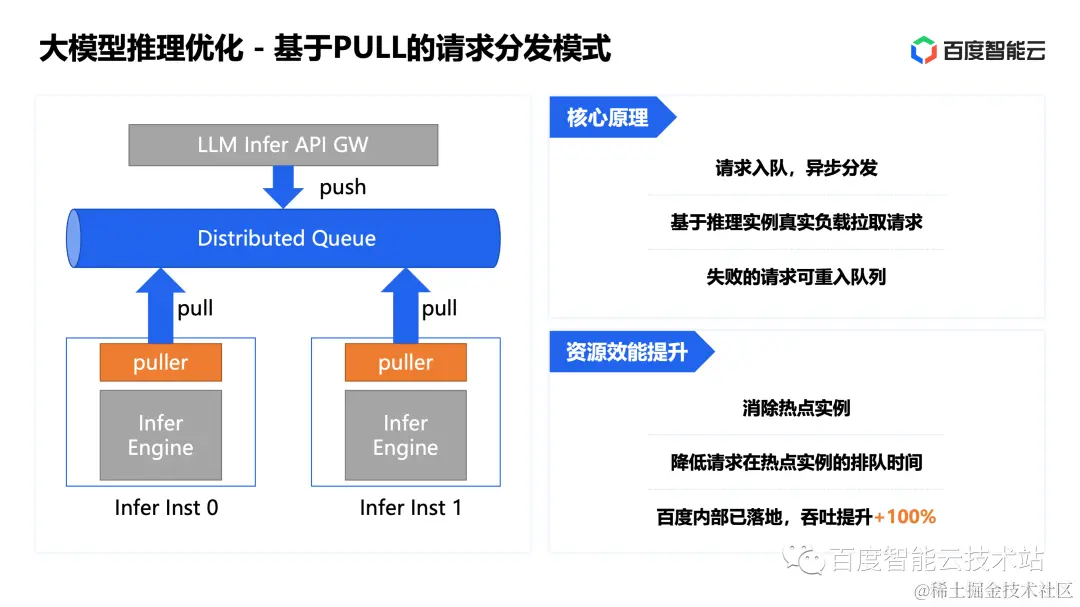 通过这种方式,可以有效地避免产生热点实例并降低请求的排队时间,这个方案在百度内部已经规模化落地,可以提升一倍以上的推理吞吐。