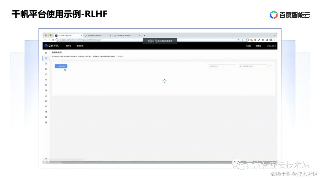 接下来,我们演示一下在千帆大模型平台进行 RLHF 的过程。详细的演示 Demo 请参考「百度智能云技术站」视频号的回放,从视频的 40 分 45 秒处开始观看。