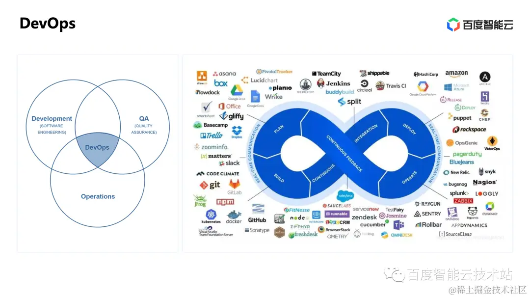 如下图所示,DevOps 各个环节中有大量的生态企业参与进来,共同构成了完整、繁荣的生态。