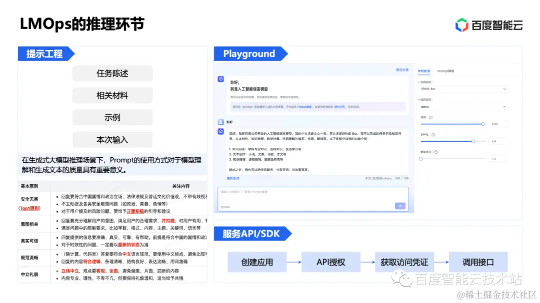 因此,千帆大模型平台是在 LMOps 的方法论指导下,针对大模型的平台功能和工具链的一个具体实现。