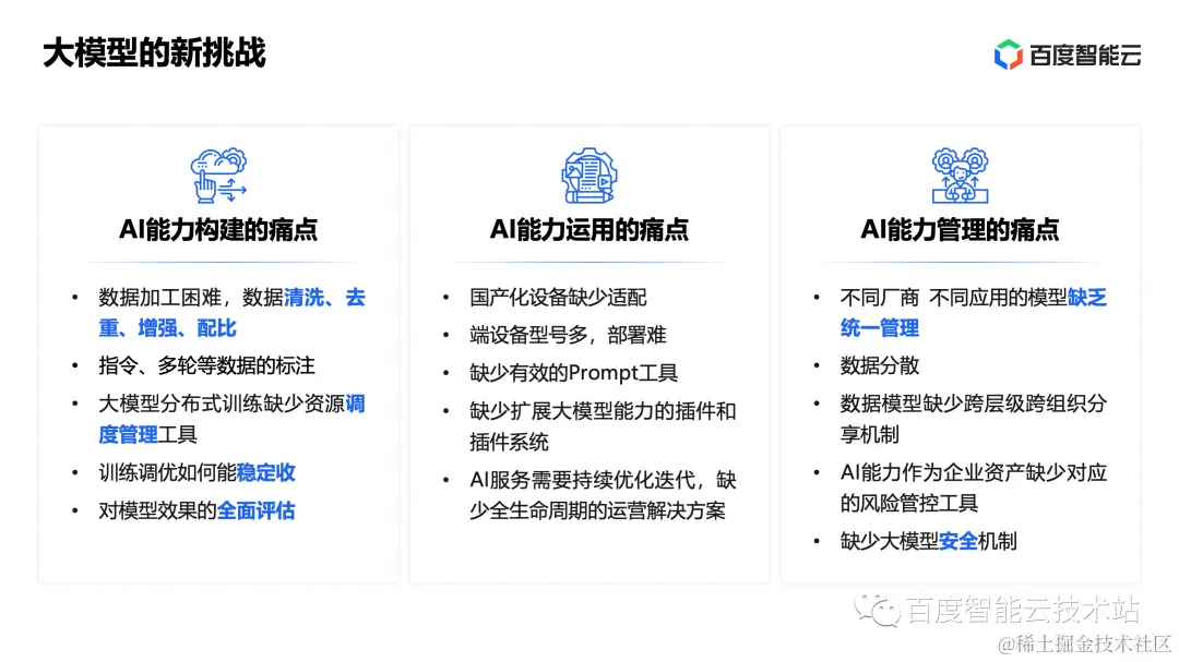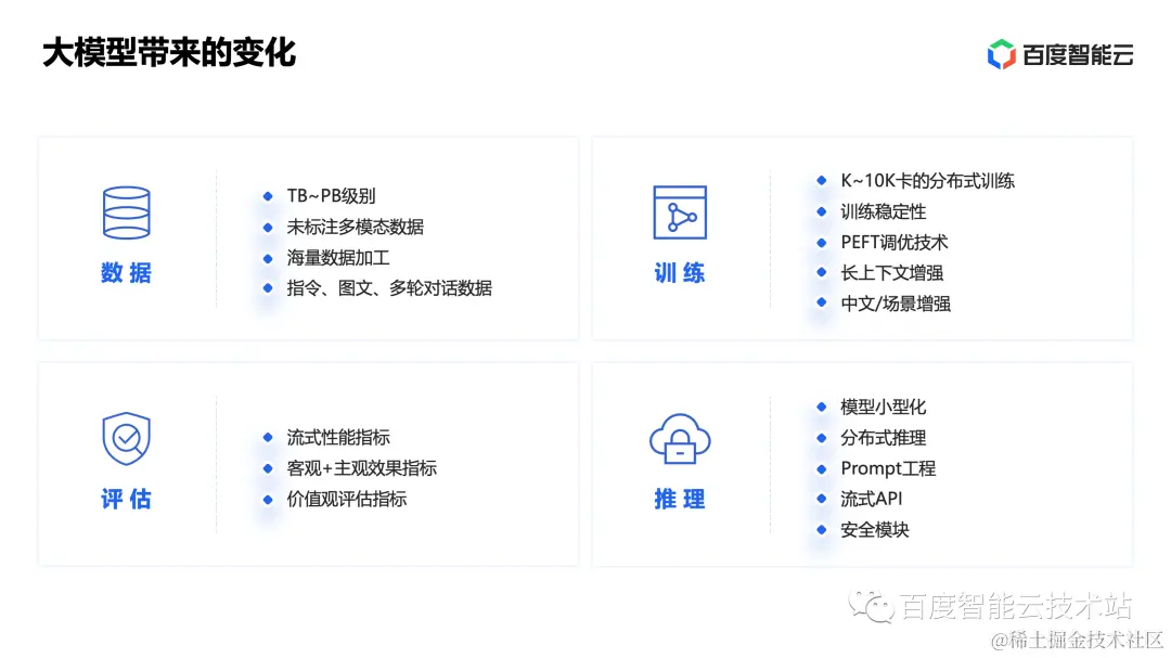 最近大模型特别是大语言模型引起了全社会的广泛关注,大模型到底在技术上带来了哪些变化和挑战?要掌握哪些关键的技术企业才能够驾驭大模型?百度智能云在这方面又能提供了哪些专业的产品?