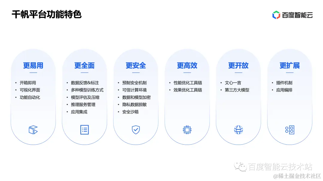 第三个就是千帆大模型平台是提供了非常可靠和安全的模型训练和推理服务的环境,包括可信计算的环境,包括隐私数据的脱敏、安全沙箱等。