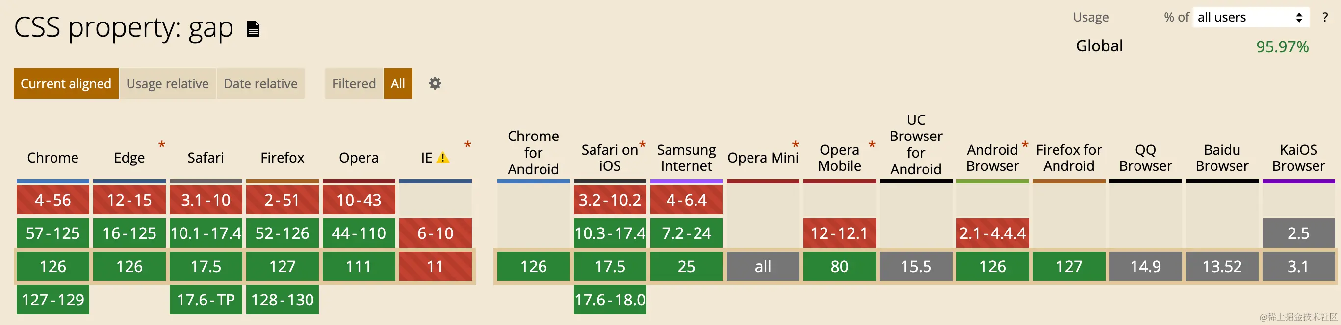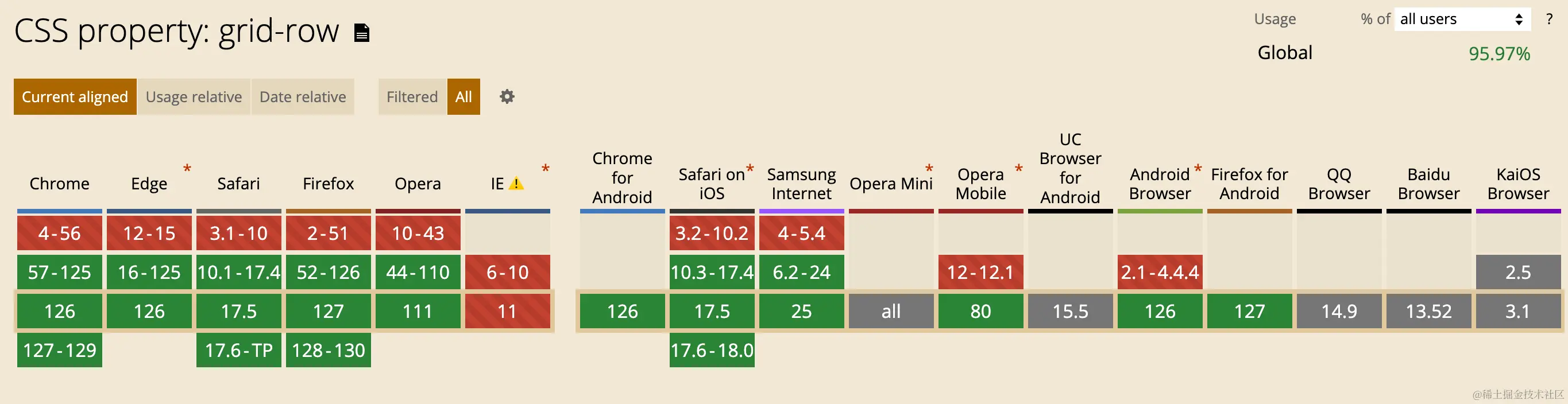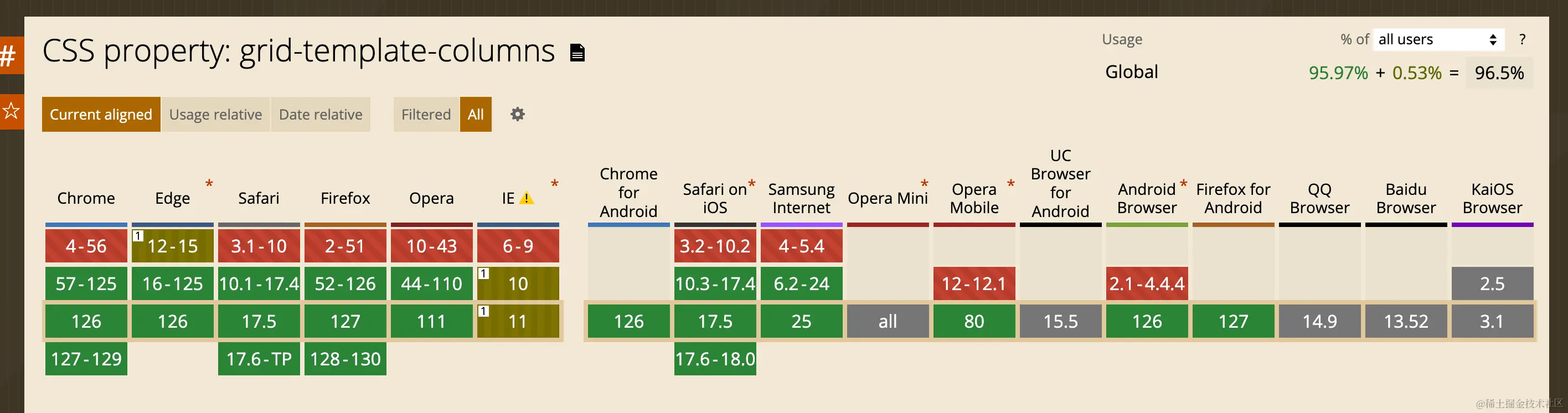 一提到 css 我相信好多小伙伴都担心兼容性的问题,grid 以前的兼容性却是有点不行,但是随着现在浏览器的支持程度的提升,现在的 grid 属性完全可以应用在生产了。