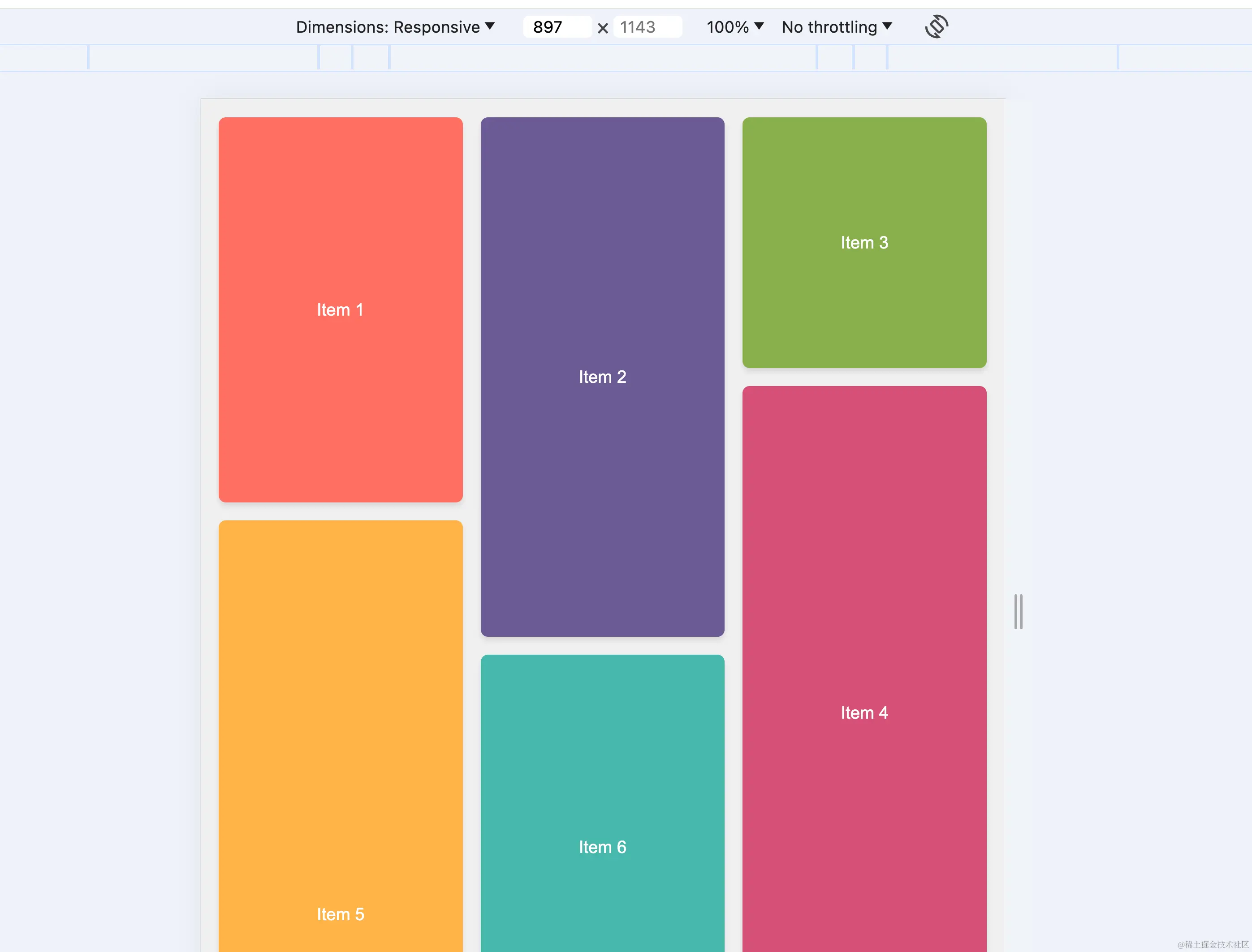 但是现在 2024 年了,我们完全可以使用纯 CSS 无任何其他依赖,实现一个高效的瀑布流布局。
