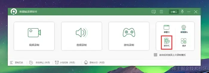 第1步:访问数据蛙录屏软件的官方网站,下载适合您设备的版本,然后打开进入页面选择录制模式,如选择 “录手机” 模式。