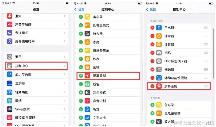 第1步:打开手机,在桌面上找到 “设置” 图标,点击进入设置。然后,手动向上滑动屏幕,点击 “控制中心” 选项。接着,点击并进入 “自定控制” ,在自定列表中找到 “屏幕录制” ,点击一下左边的“+”将其添加到控制中心。