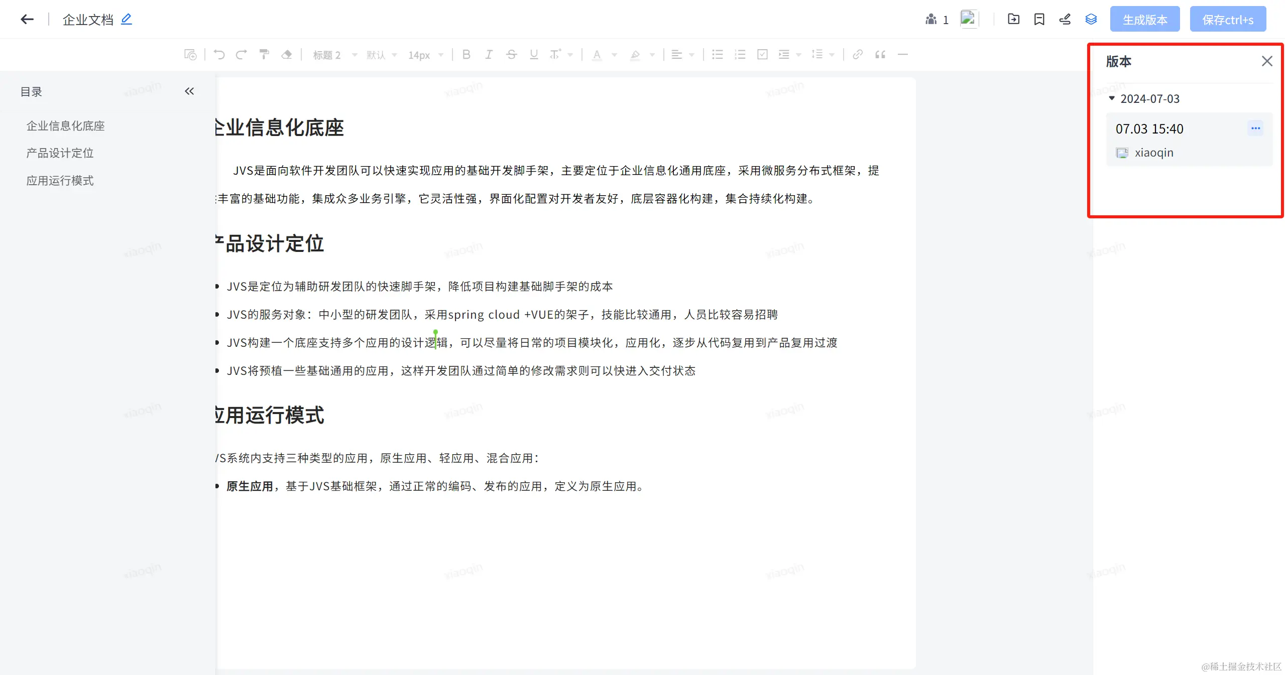 **3、版本控制与权限管理:**企业文档具备版本控制和权限管理功能,这有助于中小企业解决文件混乱的问题。版本控制可以记录文件的每一次修改,确保文件的历史可追溯性;权限管理则可以确保只有授权人员才能访问和修改特定文件,保障企业信息的安全。