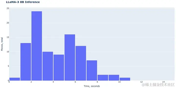 略有不足的是,Llama-3 的运行速度相比前一代模型略慢(分别为 2.5 秒和 4.3 秒)。然而实际上,4.3 秒的响应时间已经足够优秀了,因为大多数情况下会采用流式处理(streaming),并且用户通常也不会期待立刻获得即时回答。