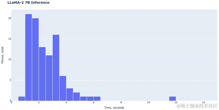 完成十局游戏大约会耗费一个小时。虽然这个速度对于生产环境来说并不理想,但在测试阶段还可以吧。有一点很有趣,Llama-cpp 采用了一种内存映射文件(memory-mapped file)的方式来加载模型,即便同时处理两个 70B 参数级别的模型,其内存占用也控制在了 12GB 以内。这就表明,在仅配备 16GB RAM 的个人电脑上,我们同样能够顺利地测试两个 70B 模型(可惜这一招在 GPU 上行不通)。
