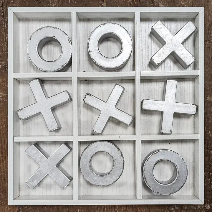 现在,我们来编写代码实现井字游戏(Tic-Tac-Toe)。在棋盘上交替放置“X”和“O”,首位成功在任意一行、一列或对角线上连成一线的玩家即为胜者: