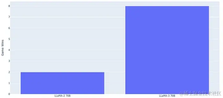 至于参数规格为 70B 的 Llama-2 模型,它的表现更佳,能够胜出两次,但即便如此,在绝大多数情况下,Llama-3 仍然占据了上风。最终,在推理速度这方面,Llama-3 以 8:2 的比分获胜!