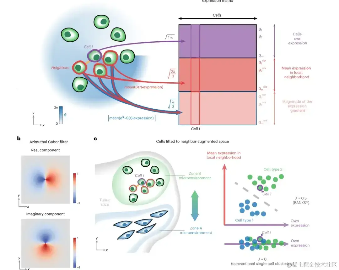 今年 4 月,一篇发表在国际杂志Nature Genetics上题为「BANKSY unifies cell typing and tissue domain segmentation for scalable spatial omics data analysis」的研究报告中,来自新加坡 A*STAR 研究所等机构的科学家们通过研究报道了一种名为 BBANKSY的算法 (Building Aggregates with a Neighborhood Kernel and Spatial Yardstick), 该算法作为一种创新的空间组学数据分析工具,其主要功能是将空间组学数据中的细胞根据类型和组织域进行有效分类。