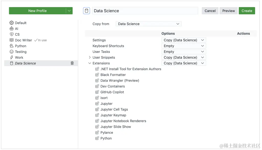 推出了新的 "Profiles Editor",使用户能够从一个地方管理配置文件。这种体验包括创建新的配置文件、编辑和删除现有配置文件,以及导入和导出配置文件与他人共享。创建新的配置文件时,你可以预览配置文件,并在保存前根据需要进行自定义。通过预案编辑器,还可以使用特定预案打开新窗口,或将预案设置为新窗口的默认预案。