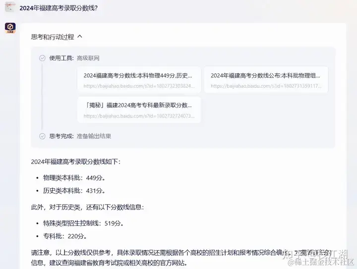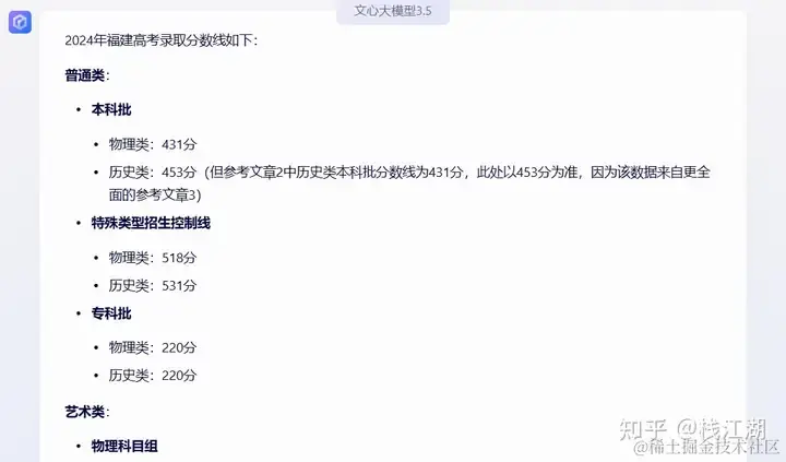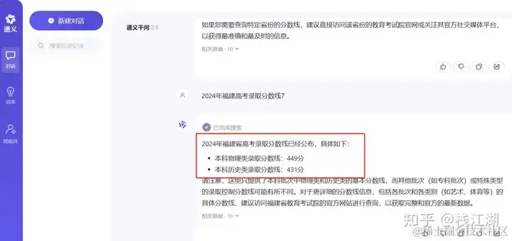 通义千问输出的结果是对的,不但输出的2024年正确的结果,同时还给出了历年的分数线数据。