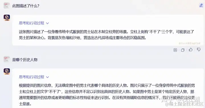 文心一言4.0也可以识别出木板上的文字,同时进了一步就是把繁体“不幹了”翻译成简体“不干了”。同样也无法给不出图片中描述的是哪些历史人物。