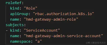 对于 ServiceAccount、Role与RoleBinding,在修改ServiceAccount与Role的资源名后需要在 RoleBinding 中对应地更新资源名称。