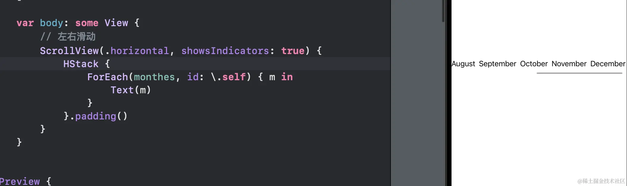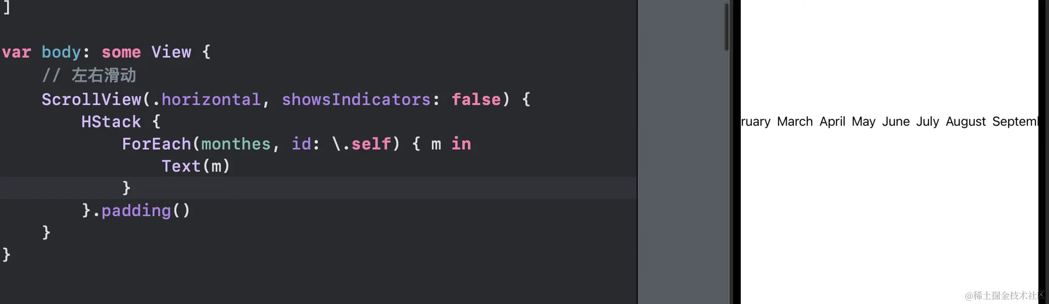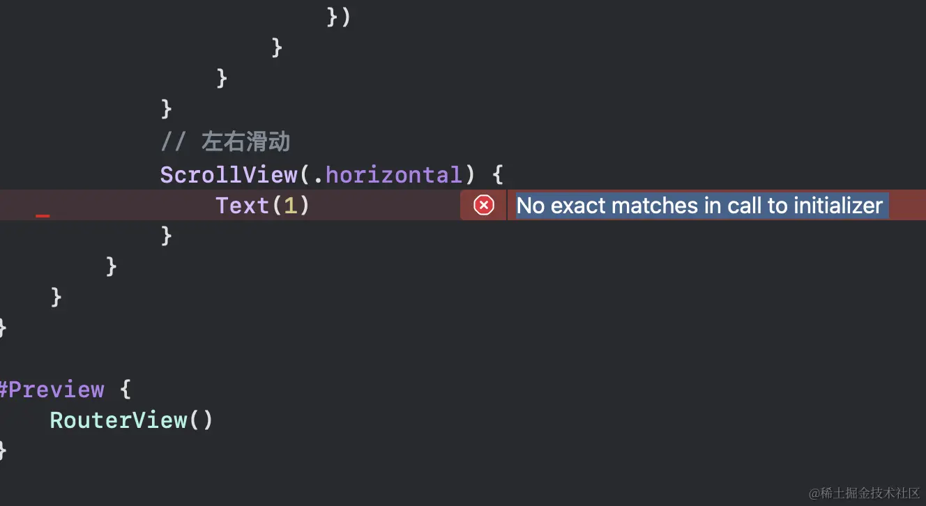 在scrollview中使用text后报错,水平滚动使用的话,应该里面包含一个水平布局的组件,例如HStack组件,可以设置ScrollView滚动方向为 .horizontal或者 .vertical