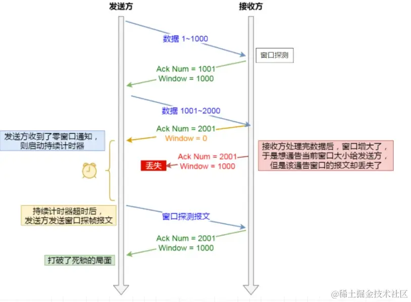 如果接收窗口不是 0,那么死锁的局面就可以被打破了。