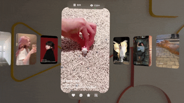 为了更贴合 Vision Pro 的空间氛围,带给用户如同“钢铁侠 托尼·史塔克”般的科技操纵感,快手 vp 版在沉浸模式中进行了创新设计,引入了更加符合日常浏览直觉的手势操作,使用户能够以更加自然和直观的方式与内容互动。用户只需通过手掌闭拢并轻轻挥动,即可轻松实现作品的切换。这种手势操作不仅简化了用户的交互过程,还增强了沉浸感和操控的流畅性,体验到前所未有的便捷与乐趣。