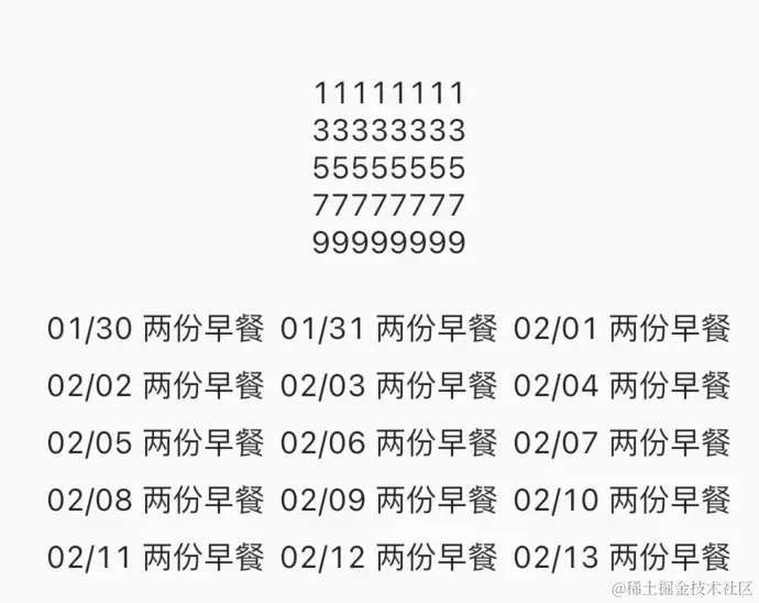 如下图所示,数字的宽度不同会导致文案不对齐的问题。