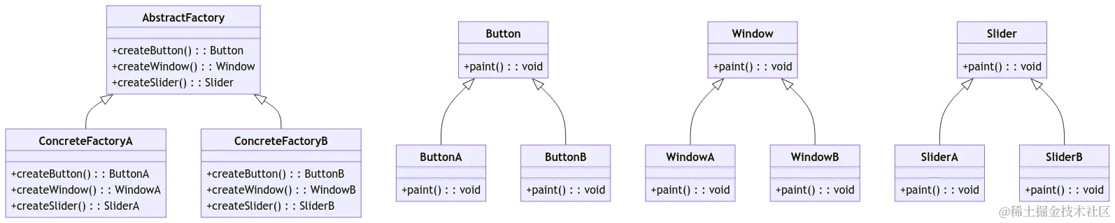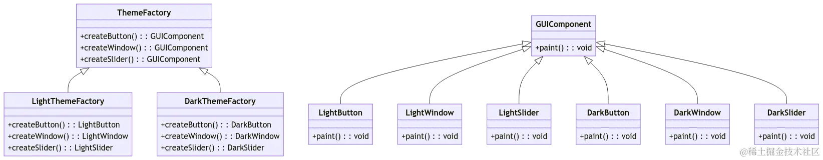 开发一个支持多种主题风格的桌面应用程序,例如浅色主题和深色主题。每种主题风格都有其特定的按钮(Button)、窗口(Window)和滑块(Slider)等界面组件。我们希望应用程序能够根据用户选择的主题动态加载相应的界面组件。