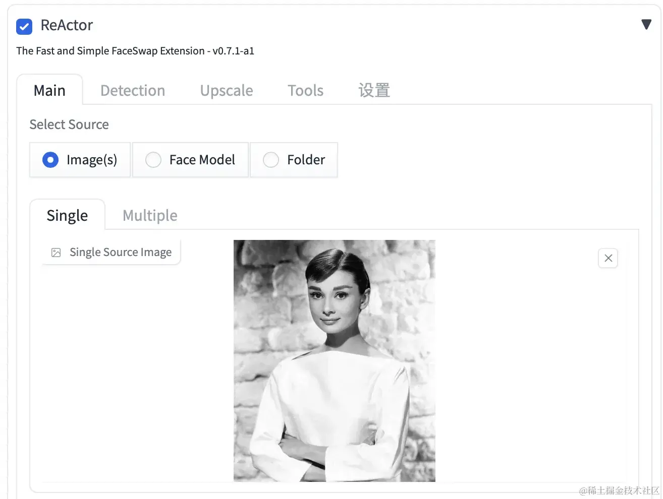 ReActor 作为插件可以集成到 Stable Diffusion WebUI 和 ComfyUI 中,本文主要以 Stable Diffusion WebUI 为例进行讲解,ComfyUI仅提供工作流。