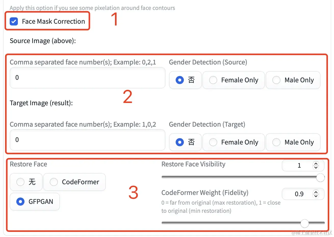 2、替换图片和被替换图片中可能有多张人脸,也可能有多种性别,这里可以用来确定替换的人脸是哪一张。