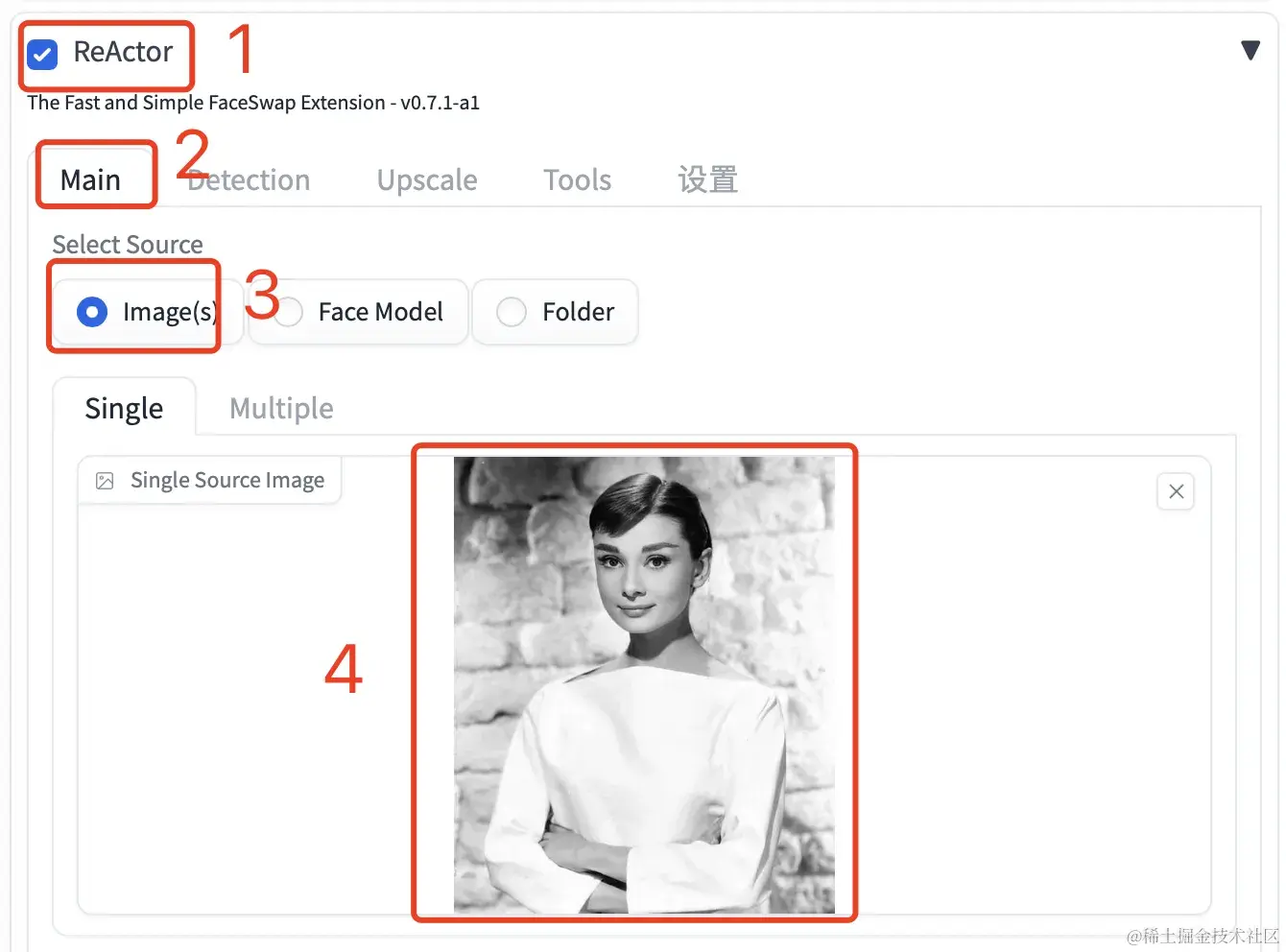 - Stable Diffusion WebUI 中安装 ReActor:github.com/Gourieff/sd…