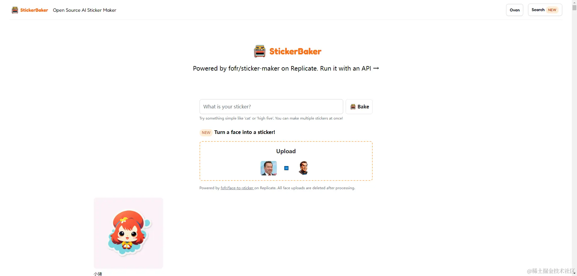 StickerBaker是一个完全免费并且开源的AI贴纸创作工具网站
