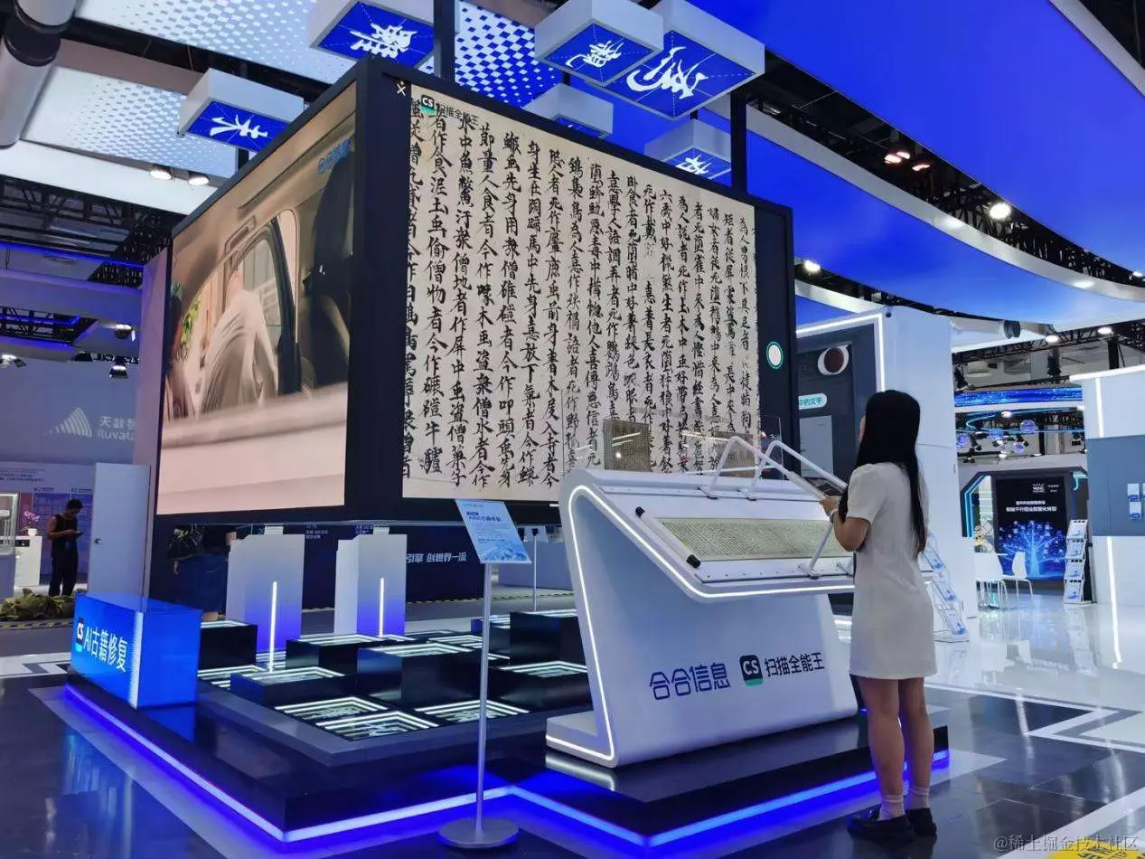 以AIGC技术为代表的数字化修复手段为延续古籍生命力提供了新的思路。近期,合合信息旗下扫描全能王携手华南理工大学团队,将AIGC技术应用于敦煌遗书残卷的图像数字化修复上,共同打造了AI古籍修复模型。大会期间,合合信息展位开放了敦煌遗书合成样本的文字修复体验项目,公众可在不同位置扫描样本卷轴,见证AIGC技术通过字形修补、褪色修复、背景补全等方式,让残损的古籍焕发新的生命力。