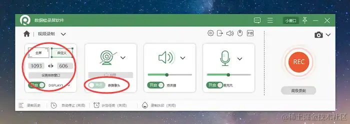 步骤2:在视频录制功能里,选择需要录制的屏幕内容,如果你对摄像头有更多的录制需求,可以在当前页面开启,并设置好位置大小。