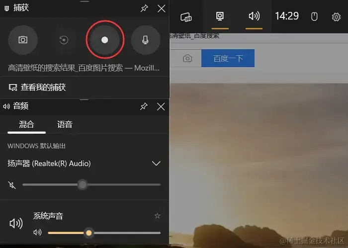 步骤2:点击Xbox Game Bar界面中的 “录制” 按钮(红色圆形按钮)开始录屏,再次点击该按钮停止录屏。录屏文件将自动保存到默认文件夹中。