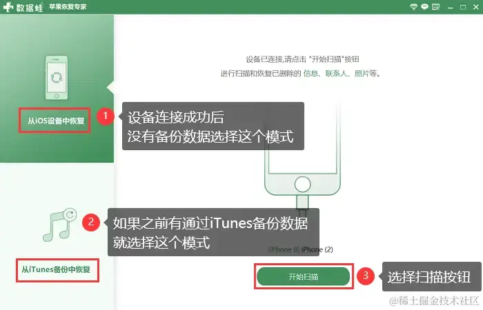 选择一款专业的手机数据恢复软件,如数据蛙苹果恢复专家,在电脑上下载并安装。然后根据提示,连接苹果手机、电脑。